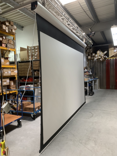 Das Leinwandtuch verfügt über einen schwarzen Vorlauf, schwarzen Rand und eine schwarze Rückseite. In den Formaten 16:10, 16:9 oder als Sonderanfertigung erhältlich.